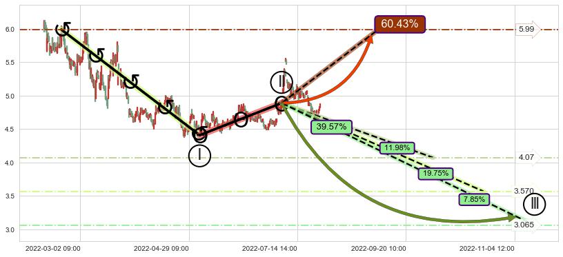 ➢ 循环浪继续向下【最低】位置(11-14:12, 3.065),匹配聚类样本比例19.82%, 可能性概率7.85%