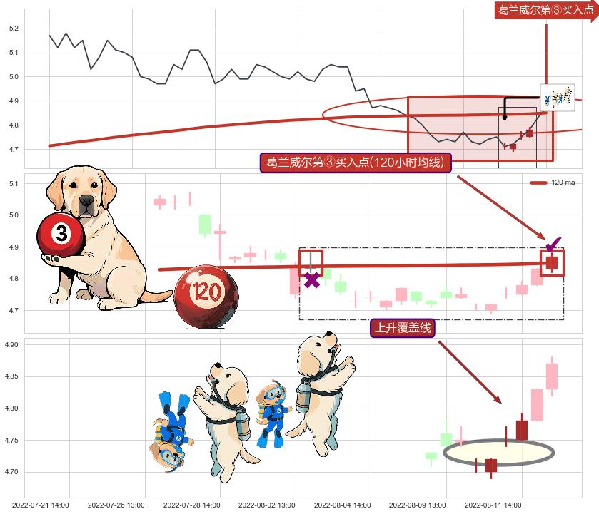 ➢ 收盘价(08-10:13: 4.71 )→回踩→第一根k线高点(08-08:14: 4.73 )