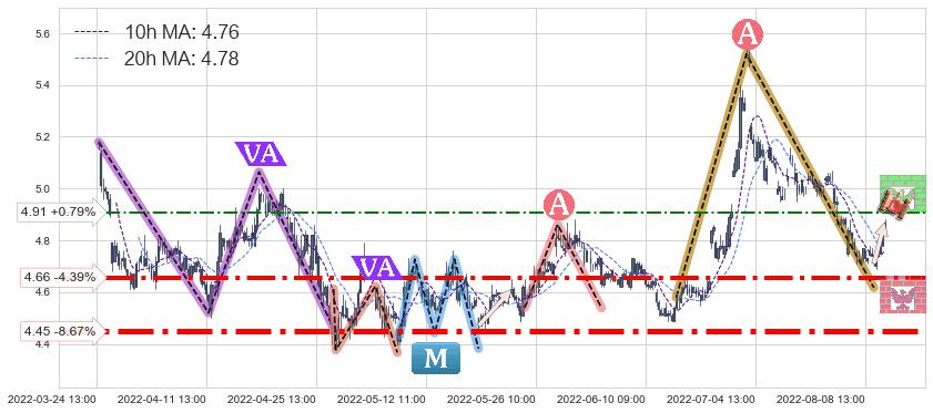 ♞ 10小时均线:4.76,20小时均线:4.78→ 快线<慢线