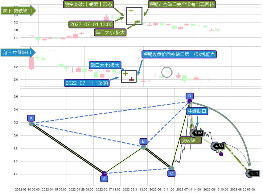 ➢ 2022-07-01 13:00形成:向下跳空【突破】缺口