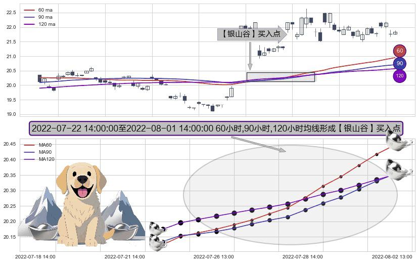 ⚀ 2022-07-25 13:00:00-小时至2022-08-01 14:00:00-小时显现 60小时-90小时-120小时均线 【银山谷】买入点 看多信号,后市看涨,买入