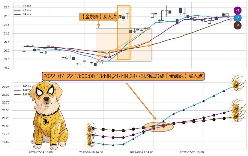 ⚀ 2022-07-22 13:00:00小时显现 13小时-21小时-34小时均线 【金蜘蛛】买入点 看多信号,后市看涨,买入