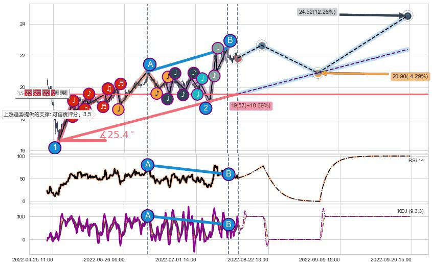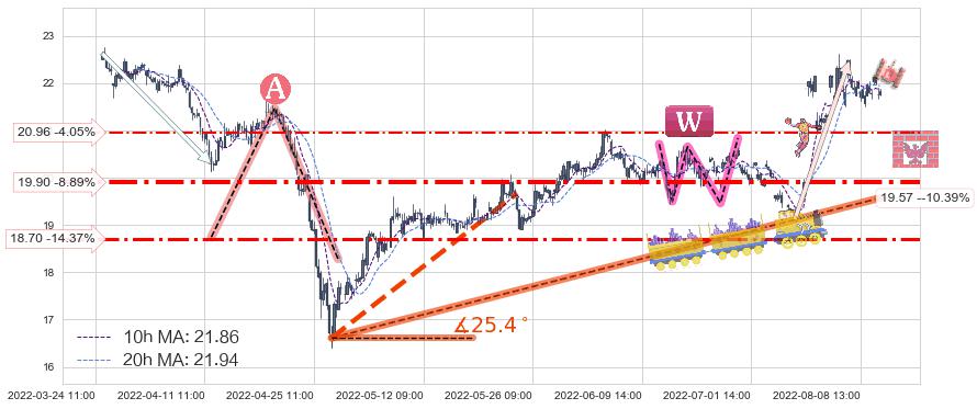 ♘ 支撑价格位19.90,可信任强度73.54%,距离最后交易2022-08-12 14:00形成的收盘价格21.84相差 -8.89%