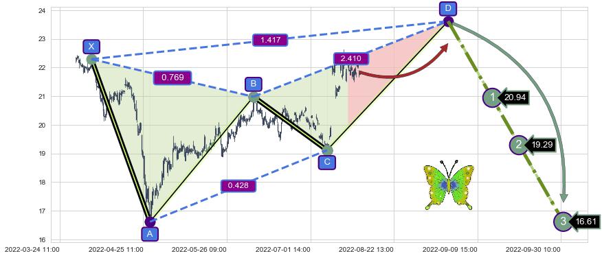 ➣ 未完成【蝴蝶】形态起点X: 04-07:09, 已到达C点: 07-15:14, 预测最终D点: 09-02:15, 共414交易小时