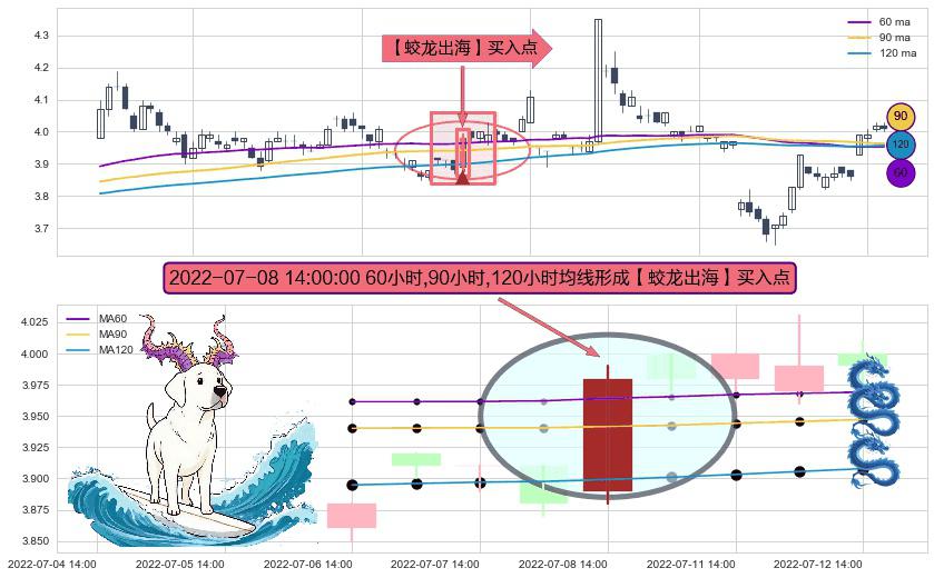 ⚀ 2022-07-08 14:00:00小时显现 60小时-90小时-120小时均线 【蛟龙出海】买入点 看多信号,后市看涨,买入