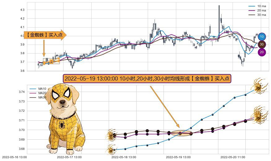 ⚀ 2022-05-19 13:00:00小时显现 10小时-20小时-30小时均线 【金蜘蛛】买入点 看多信号,后市看涨,买入