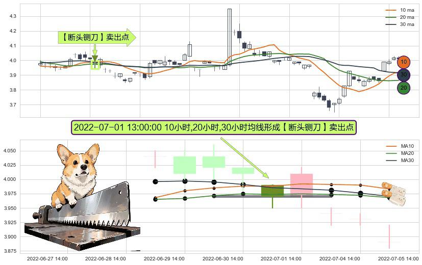 ⚀ 2022-07-01 13:00:00小时显现 10小时-20小时-30小时均线 【断头铡刀】卖出点 看空信号,后市看跌,卖出