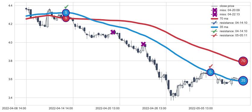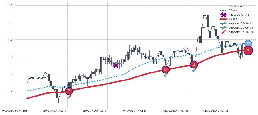 ⚂ 2022-07-08 14:00:00小时突然冒出一根大阳线,一下子顶穿三条均线且收盘价收在各条均线之上