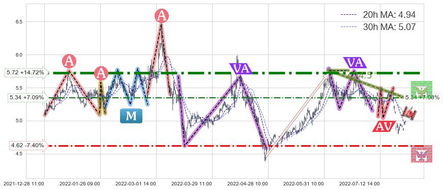 ♘ 阻力价格位5.34,可信任强度47.57%,距离最后交易2022-08-12 14:00形成的收盘价格4.99相差 +7.09%