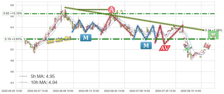 ♞ 5小时均线:4.95,10小时均线:4.94→ 快线>慢线