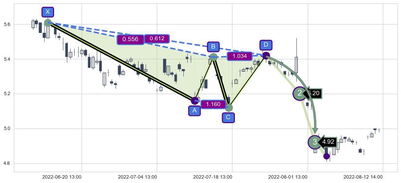 ➣ 未完成【螃蟹】形态起点X: 05-25:10, 已到达C点: 06-15:11, 预测最终D点: 08-25:10, 共212交易小时