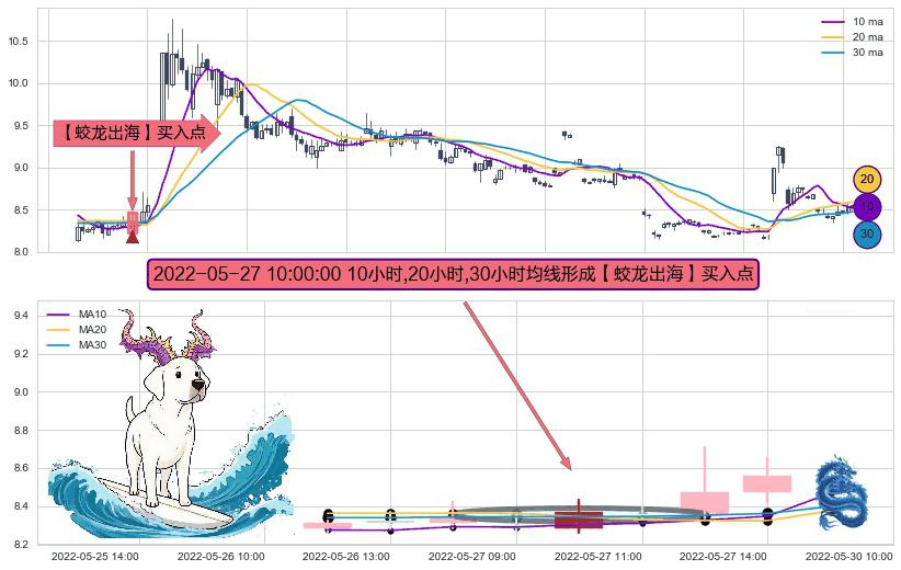 ⚀ 2022-05-27 10:00:00小时显现 10小时-20小时-30小时均线 【蛟龙出海】买入点 看多信号,后市看涨,买入