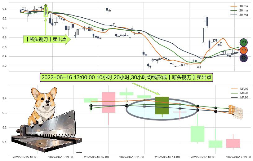 ⚀ 2022-06-16 13:00:00小时显现 10小时-20小时-30小时均线 【断头铡刀】卖出点 看空信号,后市看跌,卖出