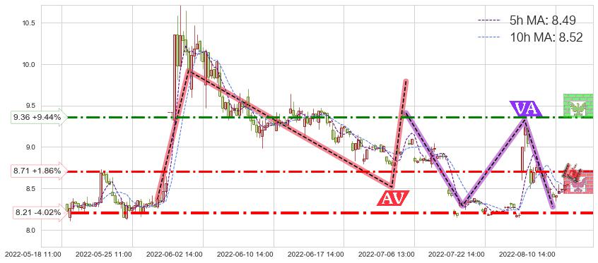 ♞ 5小时均线:8.49,10小时均线:8.52→ 快线<慢线