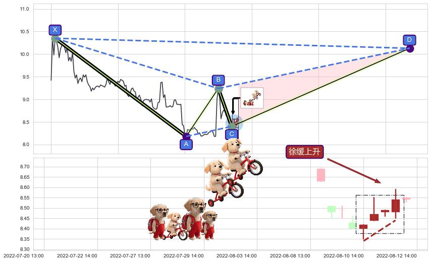 ➣ D点拟合预测价格10.13,距离最后交易收盘价格8.55相差 +18.45%