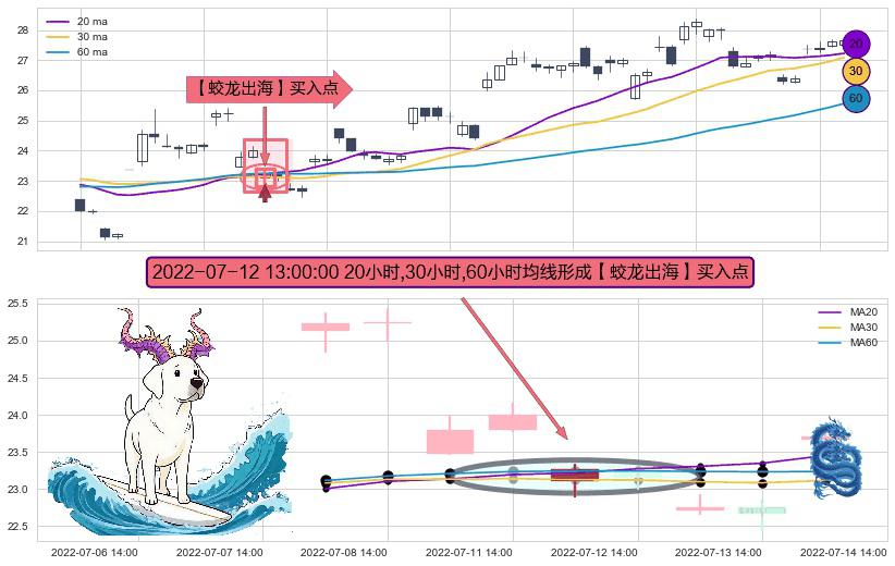 ⚀ 2022-07-12 13:00:00小时显现 20小时-30小时-60小时均线 【蛟龙出海】买入点 看多信号,后市看涨,买入