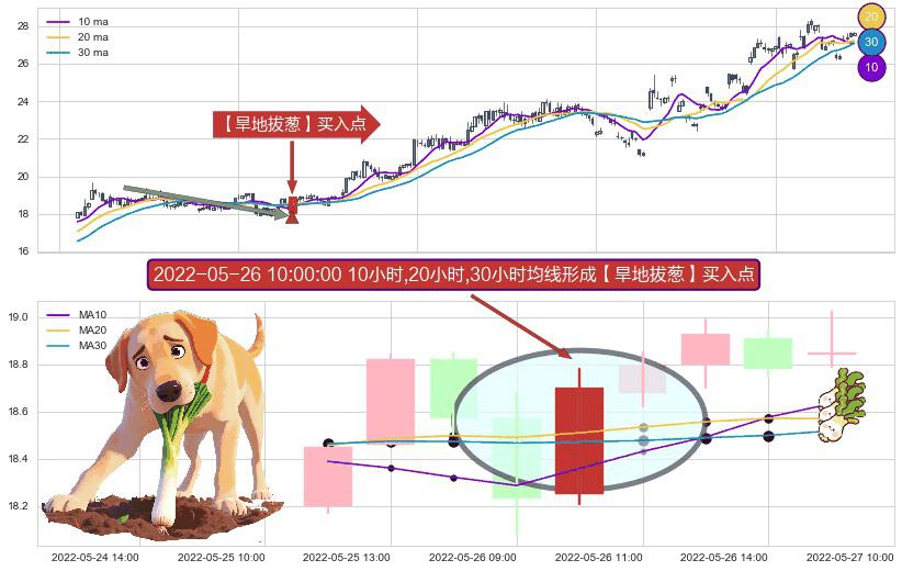 ⚀ 2022-05-26 10:00:00小时显现 10小时-20小时-30小时均线 【旱地拔葱】买入点 看多信号,后市看涨,买入