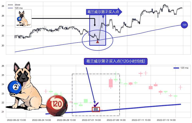 ⚀ 2022-07-01 13:00:00-小时显现 葛兰威尔均线 120小时均线 第②买入点 上升趋势的中继信号,后市看涨,买进信号