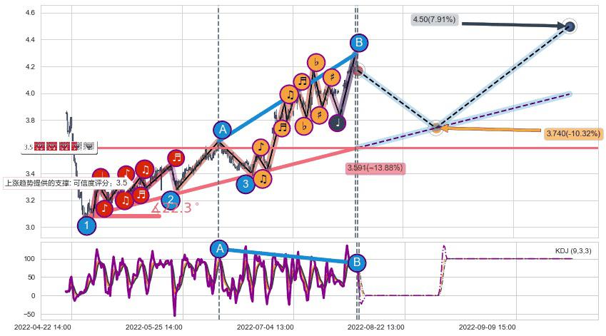 ➣ 预测:2022-09-21 10:00,【继续上扬】稳定目前上涨趋势的前提下,预测价格:4.50