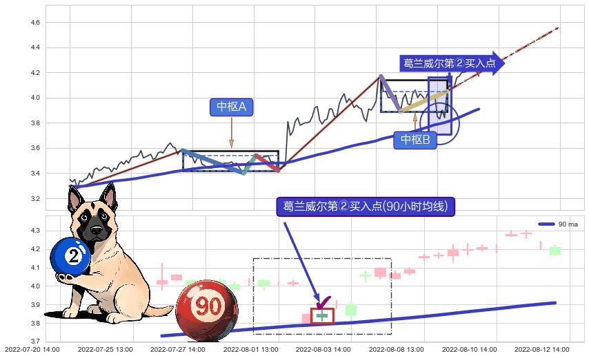 ♘ 支撑价格位3.834,可信任强度85.45%,距离最后交易2022-08-12 14:00形成的收盘价格4.17相差 -8.05%