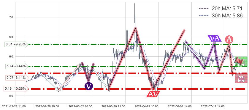 ♞ 20小时均线:5.71,30小时均线:5.86→ 快线<慢线