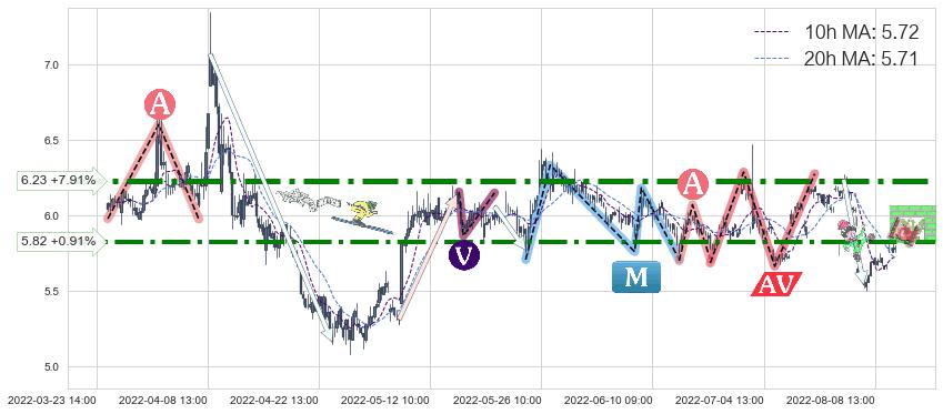 ♞ 10小时均线:5.72,20小时均线:5.71→ 快线>慢线