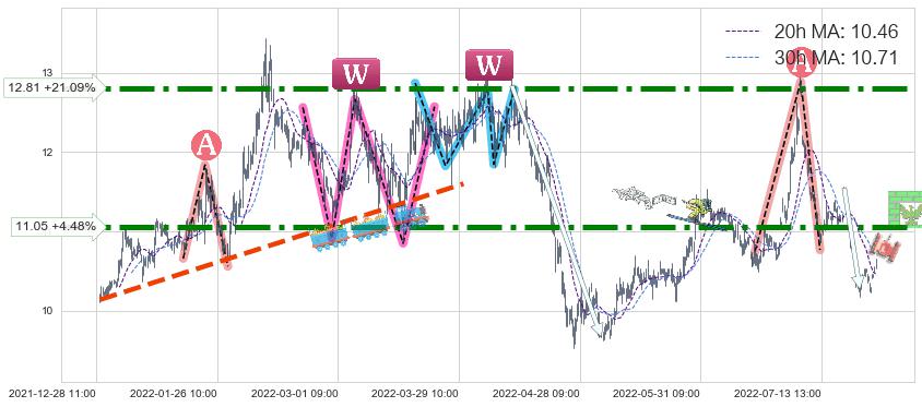 ♞ 20小时均线:10.46,30小时均线:10.71→ 快线<慢线
