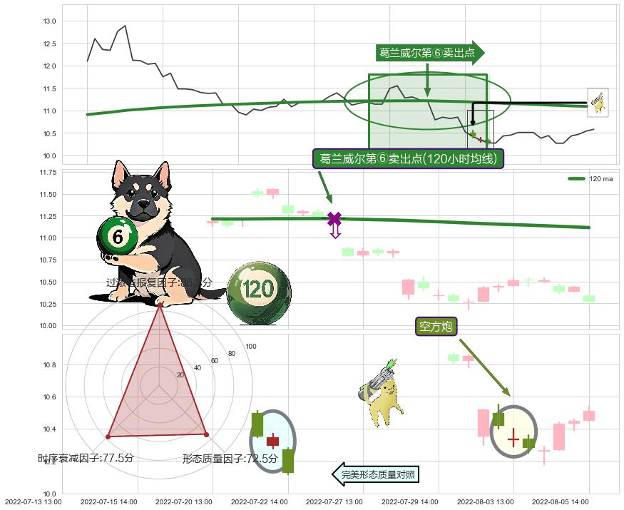 | 2 🅚:下跌抵抗 ➕ 🎢:葛兰威尔第⑥卖出点卖出点信号形成后,猜想后续上涨趋势反转下跌趋势(均值回复) ☞ 看空信号 ⇥ 【均线】交织【🅚线】⇥ 综合量化分数: 45 | > |
