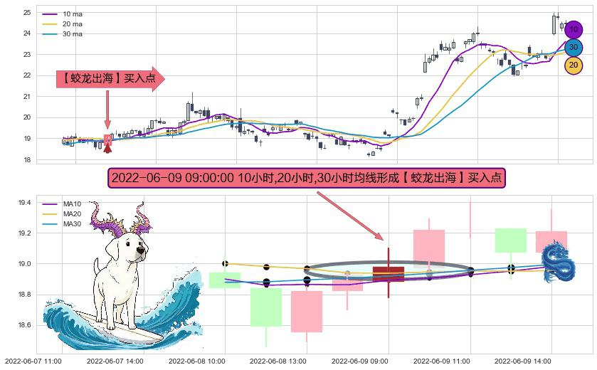 形态多维评估: ⚀ 2022-06-09 09:00:00小时显现 10小时-20小时-30小时均线 【蛟龙出海】买入点 看多信号,后市看涨,买入