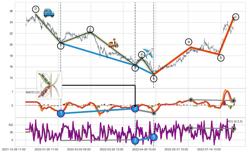 ➢ a,c调整浪MACD, RSI, KDJ走势都【未出现】背离,abc走势延续, 5浪反转概率增强
