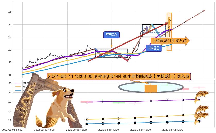 从2022-04-27 09:00至2022-08-12 14:00,共包含250个小时,阶段股价上涨54.59%,阶段股价变动位移路程比: 1 : 4,上涨趋势角度: 24.0