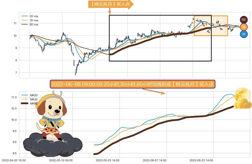 形态多维评估: ⚀ 2022-05-16 11:00:00小时-2022-07-13 14:00:00小时显现 20小时-30小时-60小时均线 【烘云托月】买入点 看多信号,后市看涨,买入