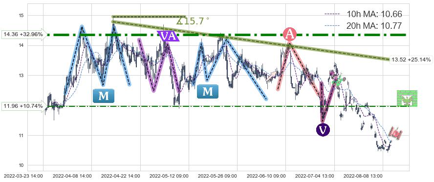 ♞ 10小时均线:10.66,20小时均线:10.77→ 快线<慢线