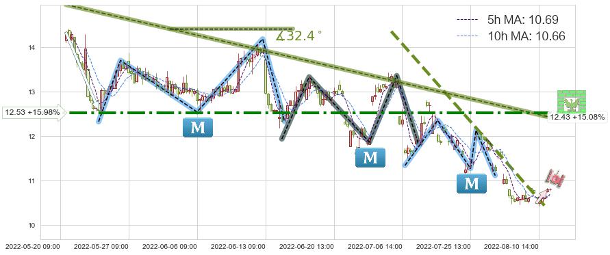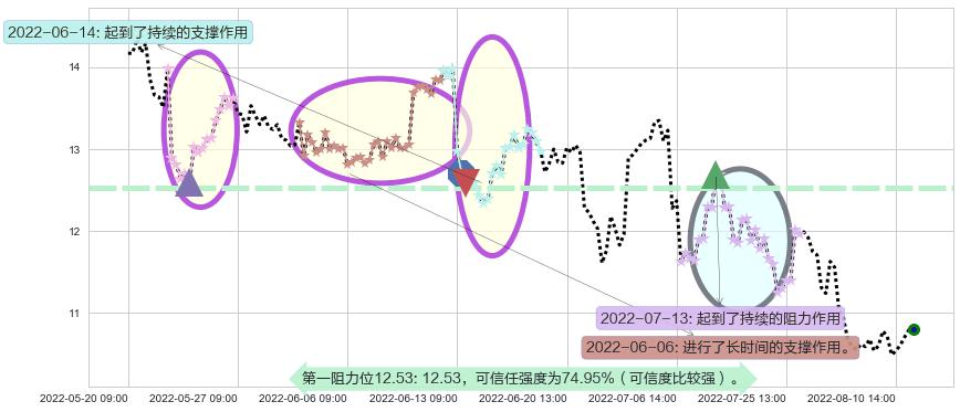 ♘ 阻力价格位12.53,可信任强度74.95%,距离最后交易2022-08-12 14:00形成的收盘价格10.80相差 +15.98%