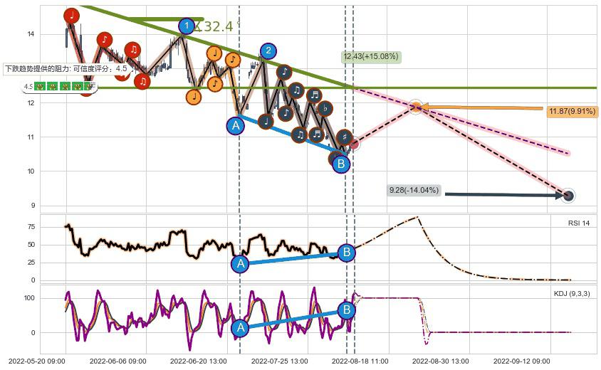 ➣ 预测:2022-09-14 10:00,【继续下探】稳定目前下跌趋势的前提下,预测价格:9.28