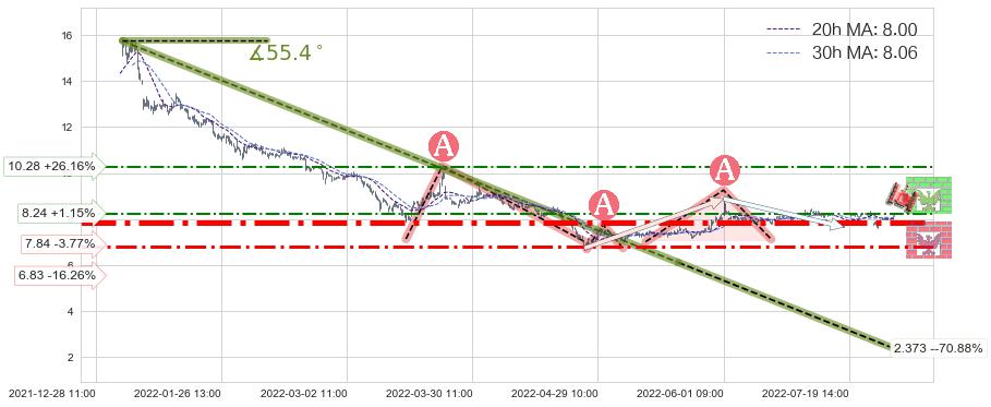 ♞ 20小时均线:8.00,30小时均线:8.06→ 快线<慢线
