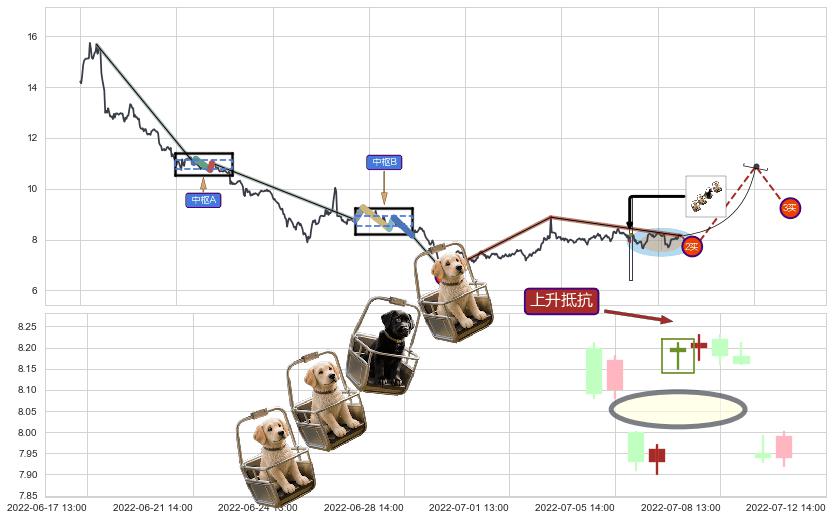 从2022-06-01 09:00至2022-08-12 14:00,共包含137个小时,阶段股价下跌-7.54%,阶段股价变动位移路程比: 1 : 14