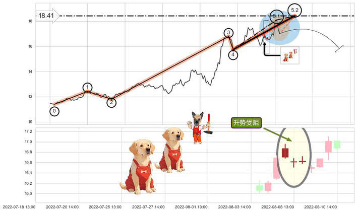 ➢ 🕰 价格走势在2022-08-05 14:00:00至2022-08-08 14:00:00期间形成升势受阻,残存影响值:-7.37