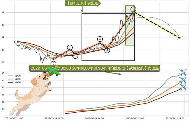 ➣ 【战机起航】卖出点 + 波浪理论上涨浪:浪5回调拐点信号叠加后【反向回撤率】偏高,【看空】信号叠加【存续影响降权】