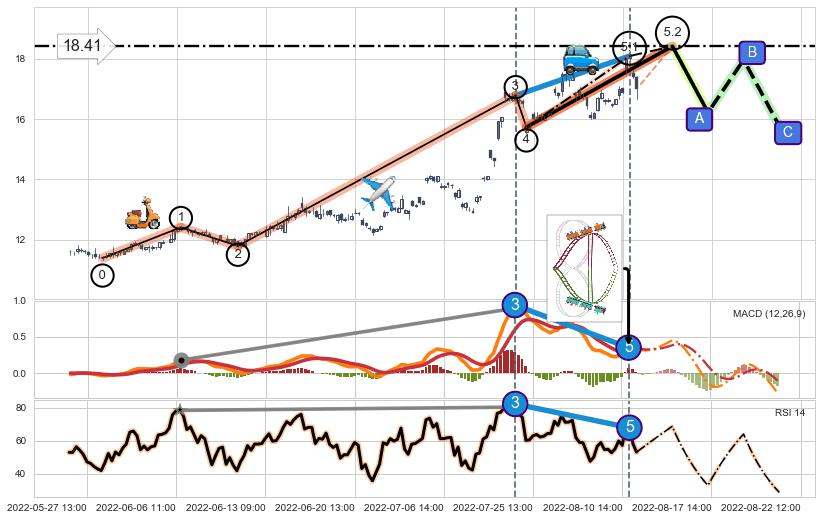 ➣ 5.1: 预测当前第5浪位置(08-11:14, 18.09),仍然有上升空间