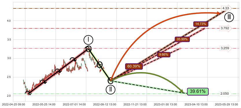 ➢ 循环浪继续向上【最低】位置(02-06:13, 3.259),匹配聚类样本比例16.00%, 可能性概率9.66%
