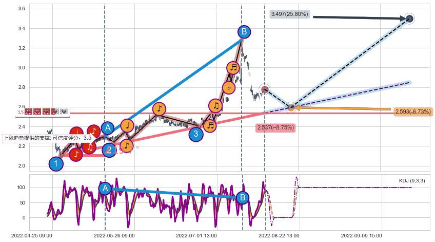 ➢ 预测:2022-08-19 11:00,【小幅回撤】稳定目前上涨趋势的前提下,预测价格:2.593