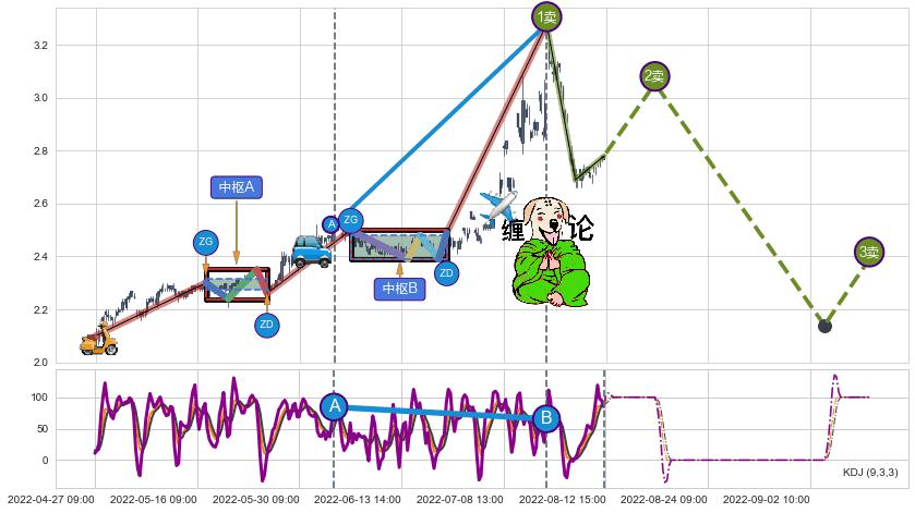 ➢ 缠论价格❶卖比A点高 ⤴,【KDJ】指标B点比A点低 ⤵️