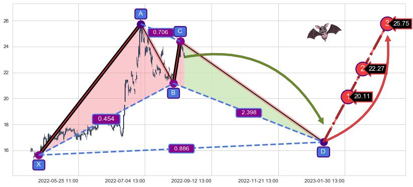 ➣ 未完成【蝙蝠】形态起点X: 05-09:13, 已到达C点: 08-09:14, 预测最终D点: 01-06:13, 共428交易小时