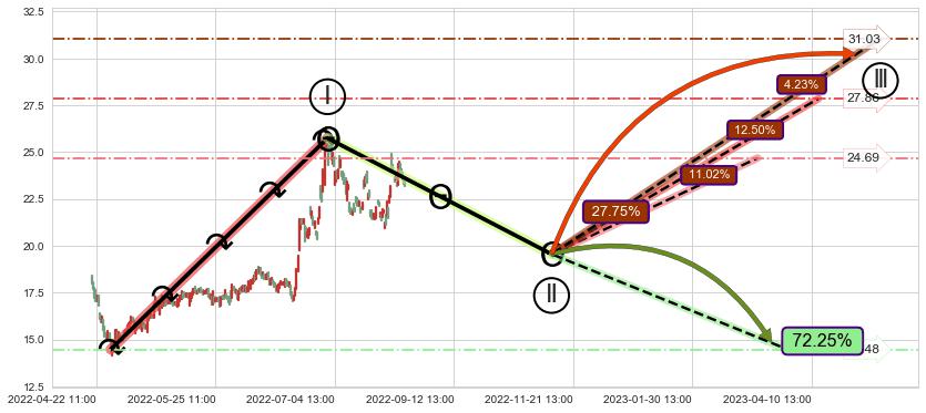 ➣ D点拟合预测价格16.63,距离最后交易收盘价格23.18相差 -28.26%