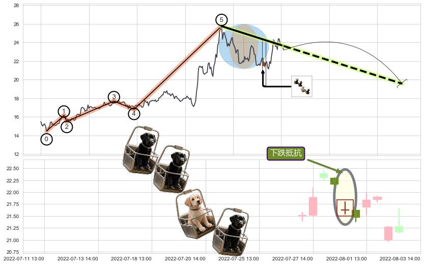 ♘ 在最后的上升阶段2022-04-26 14:00至2022-07-12 13:00存在 持续未破位的支撑位 ,支撑价格19.08,支撑可信任强度75.99%,其距离最后价格23.18相差 -17.67%