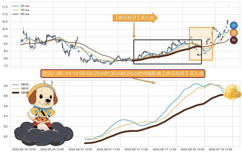 ⚀ 2022-05-30 13:00:00小时-2022-07-13 14:00:00小时显现 20小时-30小时-60小时均线 【烘云托月】买入点 看多信号,后市看涨,买入