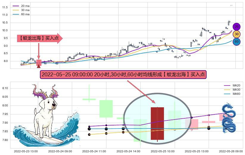 ⚀ 2022-05-25 09:00:00小时显现 20小时-30小时-60小时均线 【蛟龙出海】买入点 看多信号,后市看涨,买入