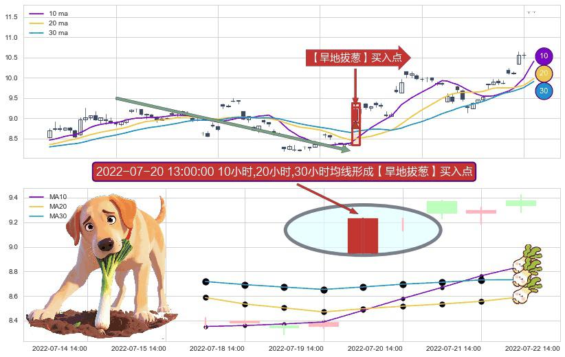⚀ 2022-07-20 13:00:00小时显现 10小时-20小时-30小时均线 【旱地拔葱】买入点 看多信号,后市看涨,买入