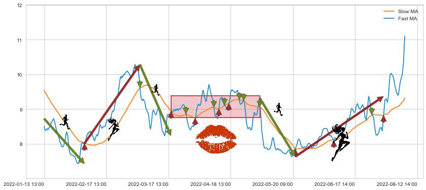 01-13 13:00至02-08 13:00 慢线与快线呈空头排列, 慢线与快线接触少,无缠绕